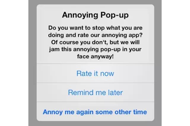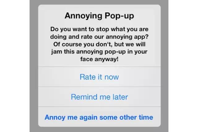 注意我们刚才用的词是“任务”。这就是多数用户看待“推荐给朋友”和“为应用打分”的方式——看成任务。互换原则就在此时发挥作用。大概来说,就是你得给予用户某些东西,然后才能向他们索取。可以是通勤应用中的免费出行,或者是某种总体价值和乐趣。最好对这些弹窗使用A/B测试,让它们以不同时机出现在用户旅程的不同位置。这能让你更好地获得重要的统计数据,了解最终应该在何时何地放置弹窗。