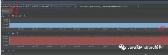 好了,介绍完这个工具,我们开始动手实践。首先打开app,点击按钮跳到会发生泄漏的activity上,再按返回键,然后再次按下按钮……这样反复操作: