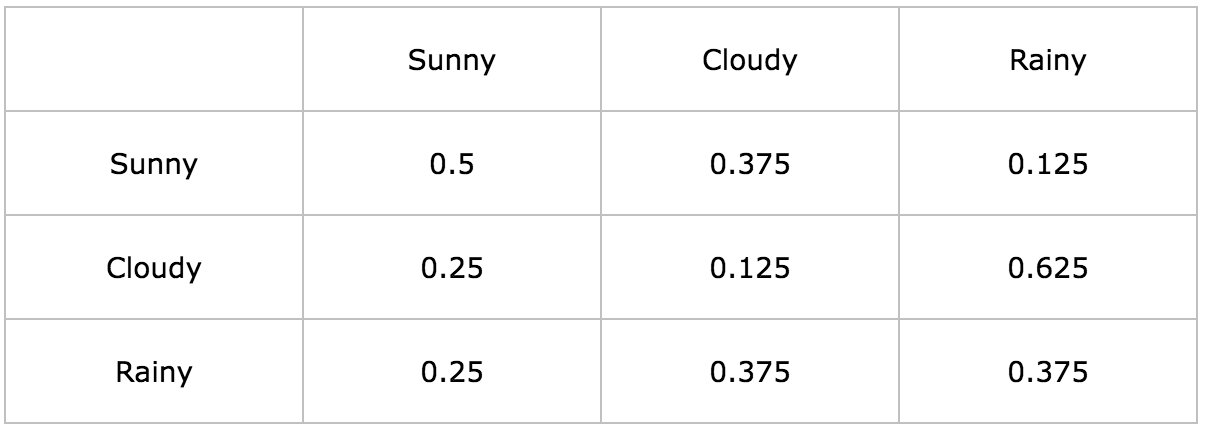 (2)隐藏的状态:Sunny, Cloudy, Rainy;