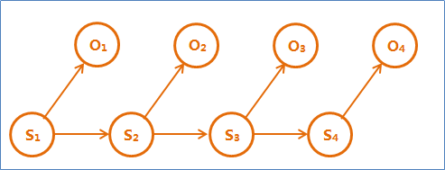 隐含马尔可夫模型的结构如下图,其中隐含的状态S1,S2,S3,…是一个典型的马尔可夫链。鲍姆把这种模型称为“隐含”马尔可夫模型。