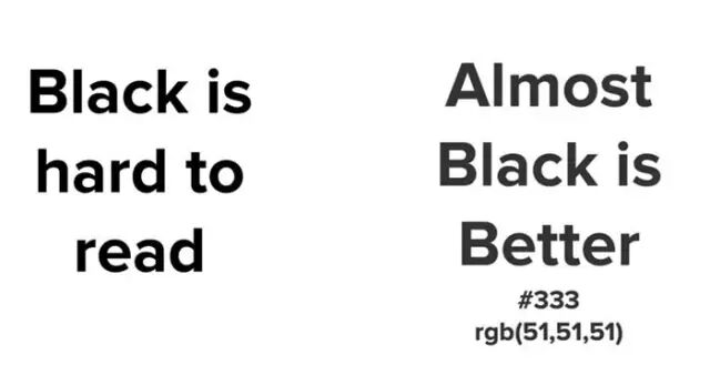 如果有设置文字黑色的机会的话,请不要使用纯黑色(#000000),让我们来使用“灰黑色”(#333333)吧。在纯白的背景上叠加纯黑,看起来会比较晃眼,专注于文字内容会比较困难。