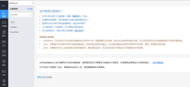 首先你需要注册一个Bmob账号,注册成功之后页面是这样的:
