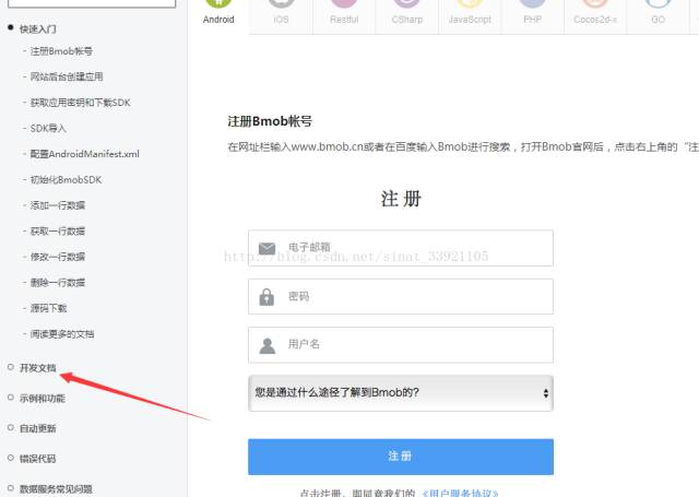 这个ID一定要注意,很重要,我们继续。页面右下角有一个文档,我们点开找到Android开发文档: