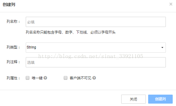 注意列的名称也必须与你项目中创建的变量名称一致,包括数据类型: