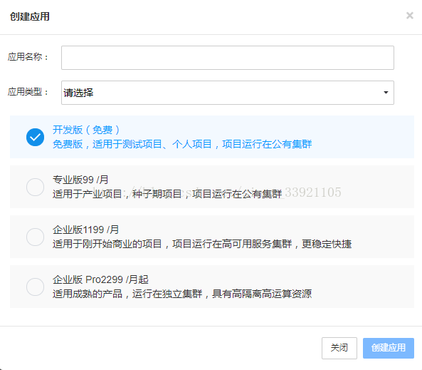 按操作进行即可,这里我们选择开发版免费的。当你创建完应用,点击所创建的应用: