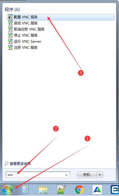 2-6:点击开始,输入框输入“vnc”,并点击“配置vnc服务”。