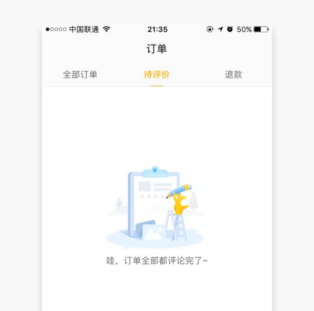 不过有时候二级导航也会选择让小短线很短,使整个页面更加简洁清爽,例如美团的订单页面:
