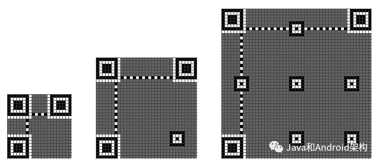 首先,先把Position Detection图案画在三个角上。(无论Version如何,这个图案的尺寸就是这么大)