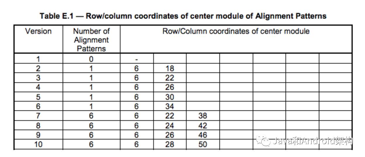 关于Alignment的位置,可以查看QR Code Spec的第81页的Table-E.1的定义表(下表是不完全表格)