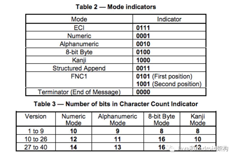 • Table 2 是各个编码格式的“编号”,这个东西要写在Format Information中。注:中文是1101