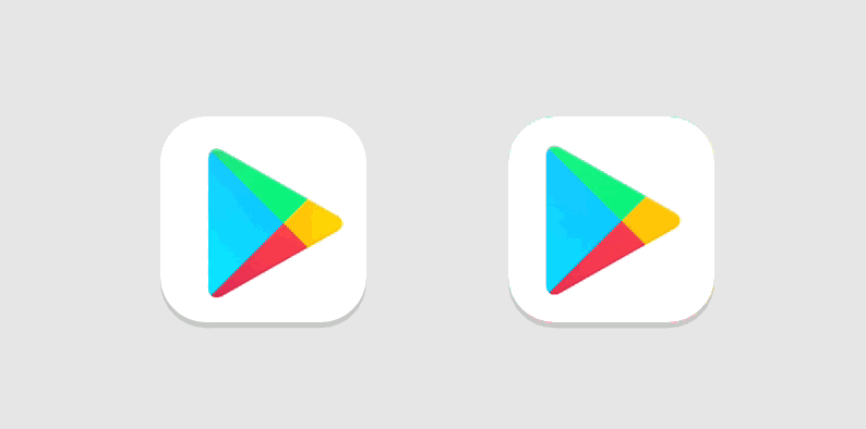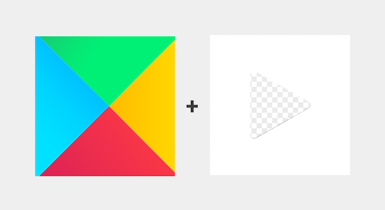 我们认为如果将遮盖元素放置在前景中,可能会很有趣 —— 您会发现本该是固定的内容也能灵动起来。这里我们为 Google Play Store 设计了一个参考图标用来简单地讲述这个思路,即将彩色三角形放置在白色背景上的前景中,如下图所示,已经成型的 logo 单独放在一个图层里。