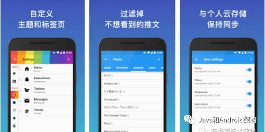 一个 Material Design 风格,功能丰富的 Kotlin 版 Twitter 应用,适用于 Android 4.0+ 。内置夜间模式,支持多账号,支持上传照片和视频,并带有强大的滤镜功能,可自定义主题和标签页、 API 设置和 Material Design 设计风格。