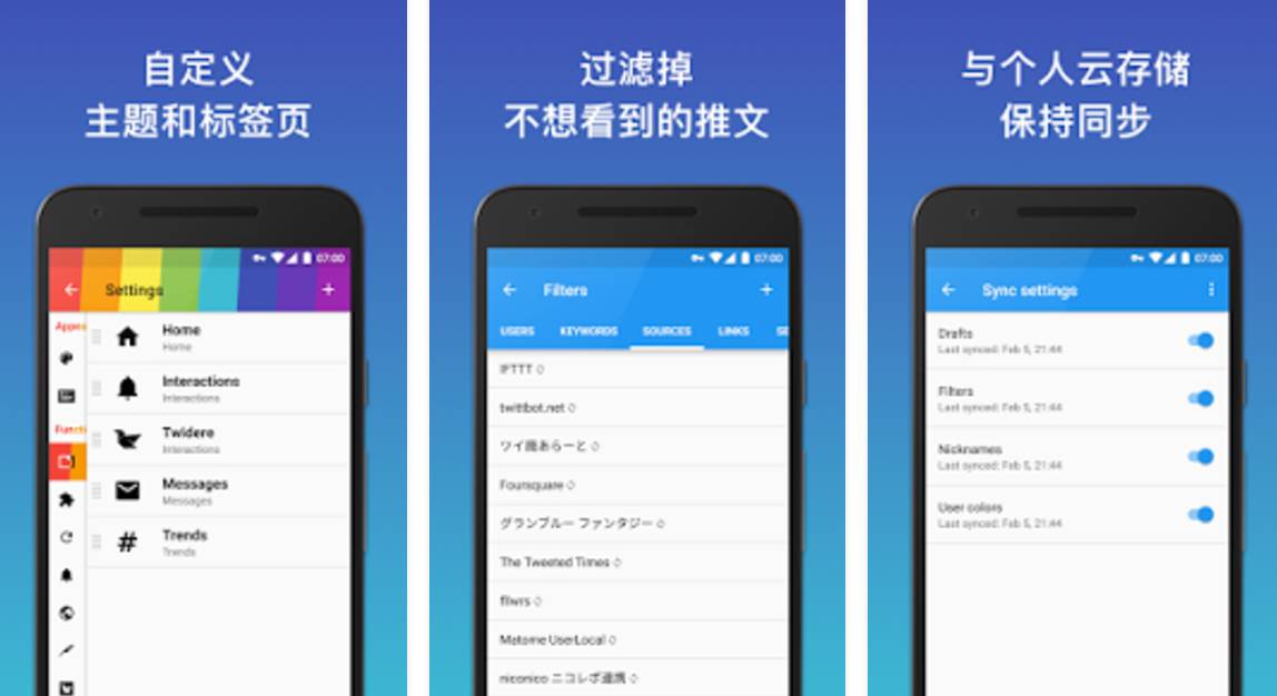 一个 Material Design 风格,功能丰富的 Kotlin 版 Twitter 应用,适用于 Android 4.0+ 。内置夜间模式,支持多账号,支持上传照片和视频,并带有强大的滤镜功能,可自定义主题和标签页、 API 设置和 Material Design 设计风格。