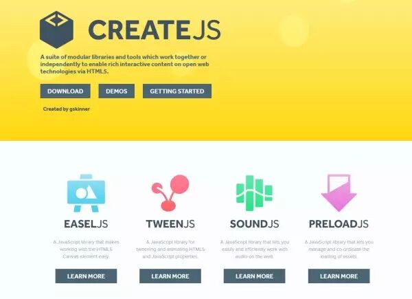 CreateJS 库是一款 HTML5 游戏开发的引擎,是一套可以构建丰富交互体验的 HTML5 游戏的开源工具包