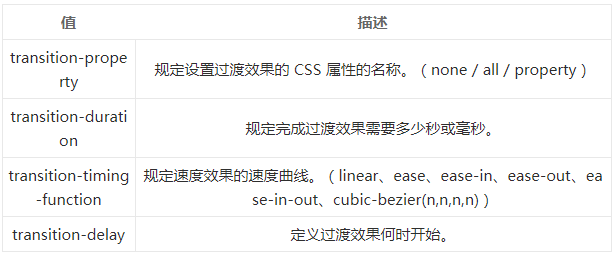 CSS 中的 transition 属性允许块级元素中的属性在指定的时间内平滑的改变,简单看下其语法规则: