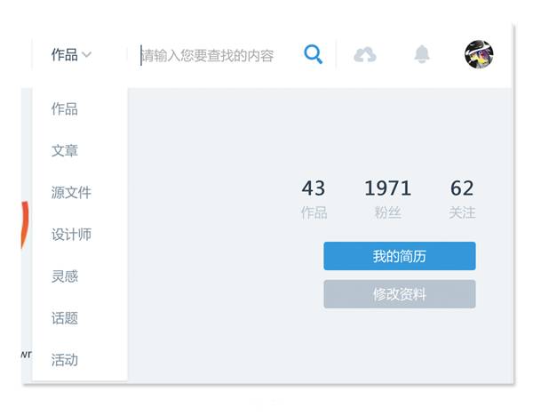 第二,用户需要查找的内容可能属于不同的类别。以UI中国为例,用户可能需要查找的是一位设计师,一篇文章或者一个插画作品。在这种情况下,我们需要在搜索框的左边给用户提供了一个下拉列表给他们去选择查找期望的内容类别。