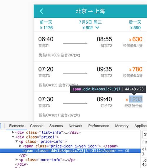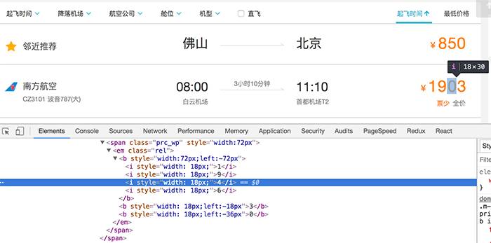 还有热爱数学的去哪儿,对于一个4位数字的机票价格,先用四个i标签渲染,再用两个b标签去绝对定位偏移量,覆盖故意展示错误的i标签,最后在视觉上形成正确的价格…