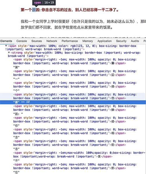 某些微信公众号的文章里,穿插了各种迷之字符,并且通过样式把这些字符隐藏掉。