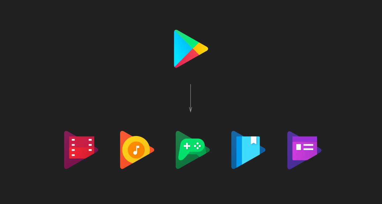 将提取的形状作为整套图标的外轮廓,例如谷歌play一样,提取出三角形后,整套图标都是以三角形作为外形,如下图: