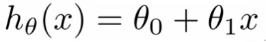 其中: hθ(x)是关于特定平方英尺的价格值(我们要预测的值),(意思是价格是平方英尺的线性函数); θ0是一个常数; θ1是回归系数。