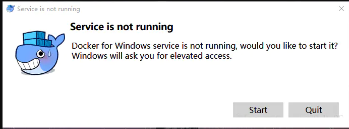 从Docker官网下载Docker for Windows Installer.exe,上面有英文介绍Windows上安装Docker步骤及安装条件。安装成功后重启电脑后,会出现如下弹出框,点击【Start】启动Docker。