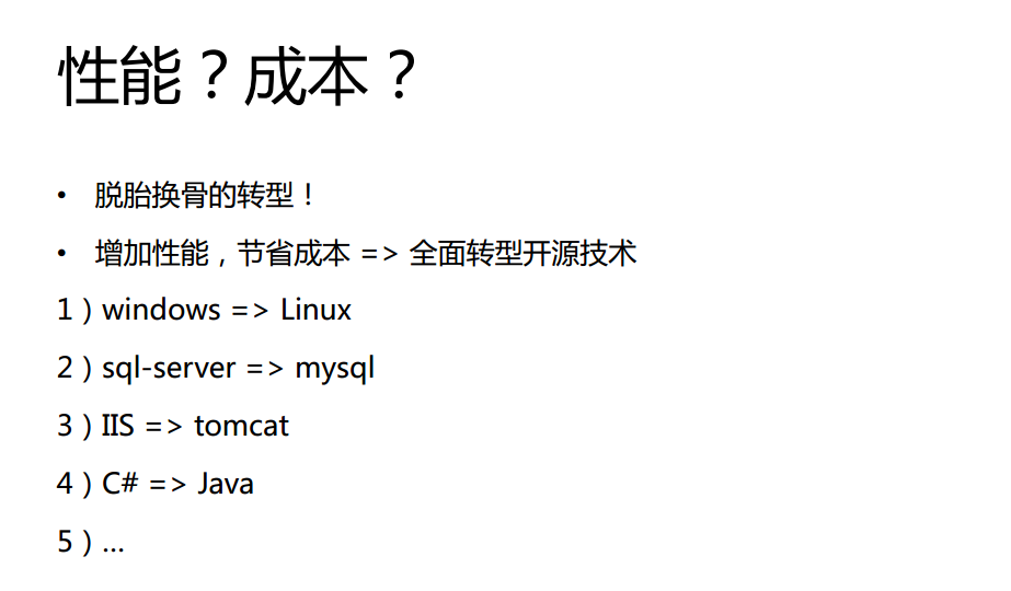 流量越来越大,当流量超过一千多万时,58同城面临的最大问题就是性能和成本。此前曾提到58同城最初的技术选型是Windows,整个网站的性能变得非常之低。即使进行了业务拆分和一些优化,依然解决不了这个问题,所以当时做了一个非常艰难的决定,就是转型:将整个Windows技术体系转向了Java体系,这涵盖了操作系统、数据库等多个维度。