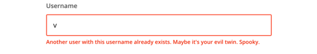网站通常只会在所有验证状态中使用一个错误消息。离开此空白电子邮件地址时会显示“输入有效的电子邮件地址”,这时你会错过“@”字符。 MailChimp以另一种方式执行——它们对于每个电子邮件验证状态都有3个错误消息。第一个是在提交表单时检查输入字段是否为空。另外两个检查是否有“@”和“.”字符。(但“请输入一个值”不是错误写入的一个很好的例子,因为你不知道应该输入一个什么样的值)。显示用户实际的消息,而不是常规的消息。