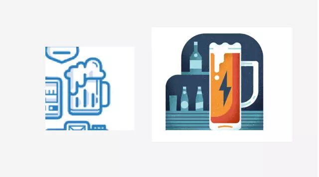 如果你非要借鉴别人的作品,也没关系,我忍你,但这里必须要告诉你一个提高原创度的方法,就是多找几个参考,每个参考提取一点可借鉴的地方,比如我们画一杯扎啤,这里找到两个可以借鉴的参考(大家可以找更多):
