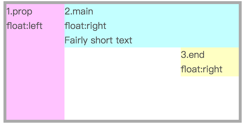 <div class=“main”>2.main<br>float:right<br>Fairly short text</div>