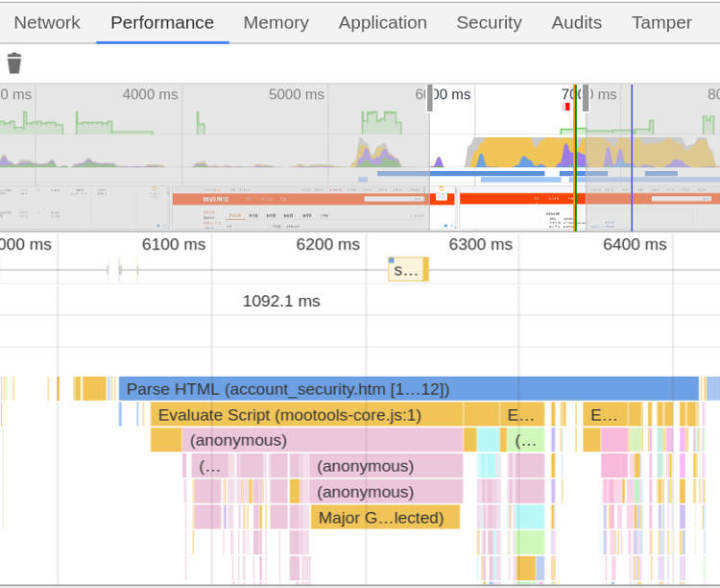 Chrome 浏览器可以生成页面脚本的火焰图,用来进行 CPU 分析。