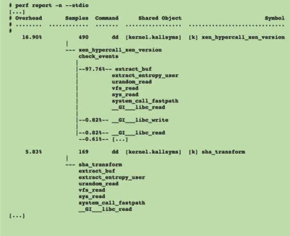 为了便于阅读,perf record命令可以统计每个调用栈出现的百分比,然后从高到低排列。