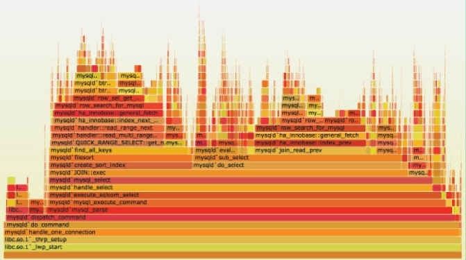 火焰图就是看顶层的哪个函数占据的宽度最大。只要有”平顶”(plateaus),就表示该函数可能存在性能问题。