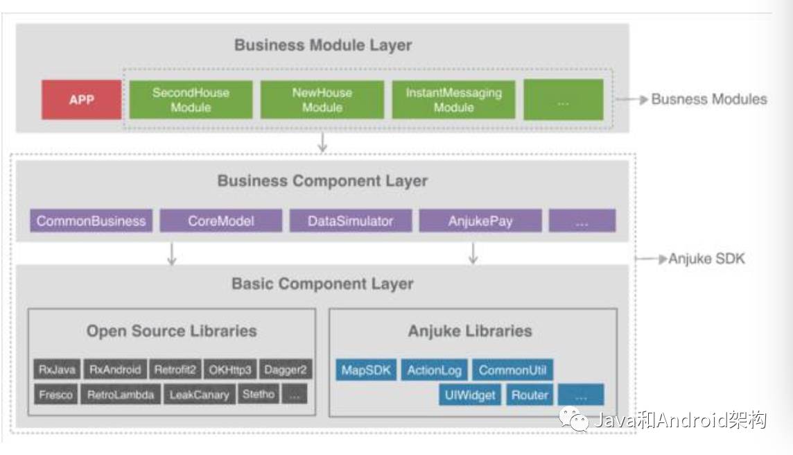 在《安居客 Android 项目架构演进》这篇文章中,我介绍了安居客 Android 端的模块化设计方案,这里我还是拿它来举例。但首先要对本文中的组件和模块做个区别定义