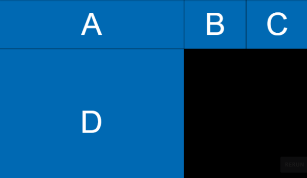 看吧,加两个字母之后也没啥神奇的效果。加两个字母对网格没什么影响,为什么呢?因为我们已经将其设置成了两列,所以这两个字母的 div 直接被放在了它们下面,并且正好是 1fr 宽: