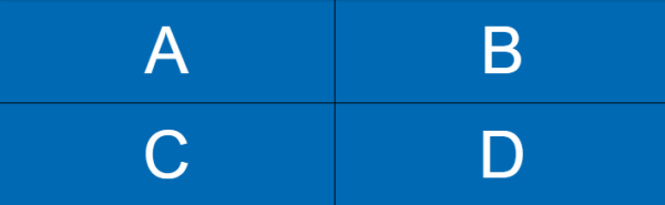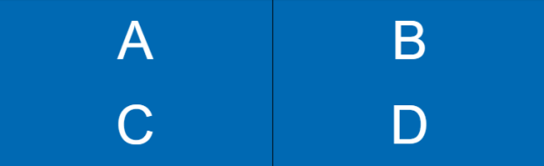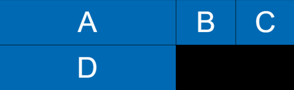 但是现在我有一个疑问啊,为啥字母 A、C 之间以及 B、D 之间没有 1px 的距离?╭(╯^╰)╮ 因为 grid-column-gap 只用于列,我们刚才做的是在网格布局中增加了一行。那就必须使用 grid-row-gap 才能看到想要的效果: