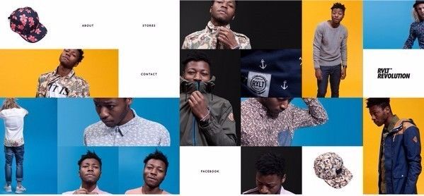 将导航链接块与商品图片放于矩形栅格之中,由此呈现了它的主页,同时又合理的展示了商品。