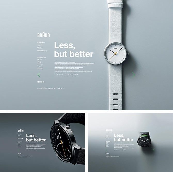 例如:BRAUN博朗,整个页面,简洁的图片与文字的排版,让视线非常集中,