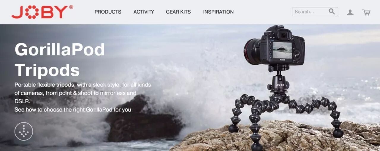 灵活的三脚架在整个图片中作为焦点而存在,整个首图的设计富有创造性,信息和内容的传递也颇为高效。使受众群非常直观的看到三脚架在户外的实际使用画面。