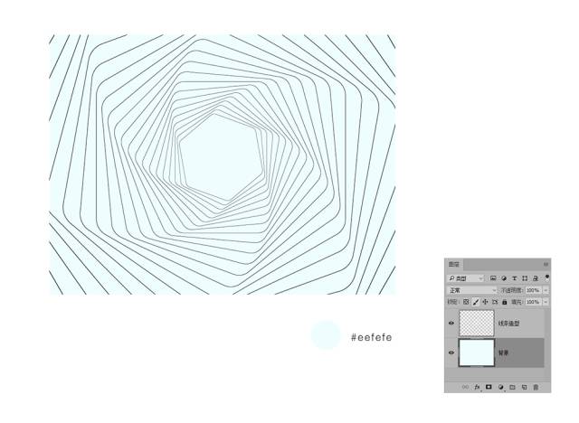 将导出透明背景的PNG图片加入到PS当中,可以在PS中再新建一个图层作为背景色。背景色填充为#eefefe。
