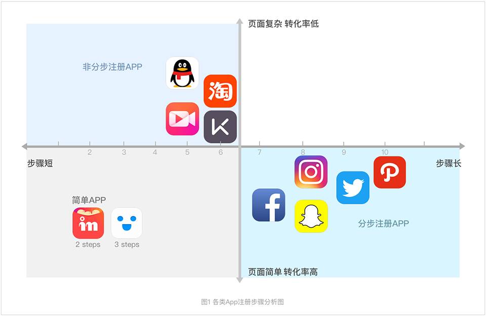 依据桌面调研,多数分步注册APP平均为5步左右,多数非分步注册APP平均为8步左右。并且Facebook曾针对分步注册与非分步注册做过A/B Test,其结论指出分步注册的转化率远高于非分步注册。由此可见,非分步注册强行减少注册页面,不如适当拉长战线,给用户轻负荷的操作,让用户在不知不觉中完成注册流程。
