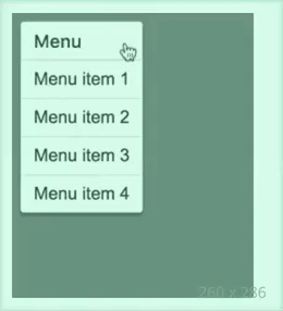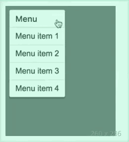 我们定义好菜单收起和展开两种状态下的 width 和 height 属性,并且给元素加上 transition 过渡,通过切换元素的 class 实现动画效果。具体的实现代码如下: