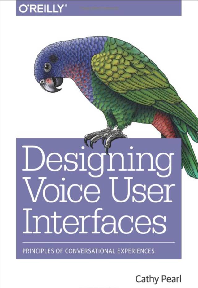 《Designing Voice User Interfaces:Principles of Conversational Experiences》,作者 Cathy Pearl,美亚4.5星推荐评分,力推。这本书是2016年底出版的,里面的例子非常新,而且结合作者的实际项目经历,很有实战意义。