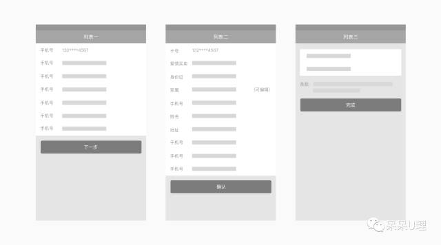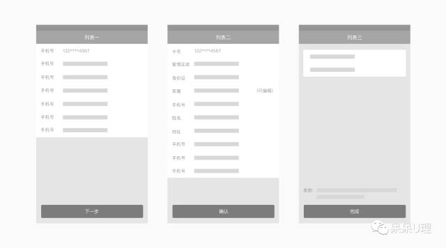 但是这并不能说明这种方法好,如果我假设:这三个页面中的列表是需要填写或编辑的,则按钮置于底部就会在操作上显得不是很方便。