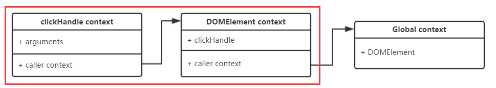 这里需要注意的是,我们再研究函数中的 this 指向时,只需要关注 this 所在的函数是如何调用的, this 所在函数外的函数调用都是浮云,是不需要关注的。因此在所有的图示中,我们只需要关注红色框中的内容。