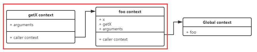 从上图中,我们可以看出getX方法的调用者的上下文是foo,因此getX方法中的 this 指向调用者上下文foo,转换成 call 方法为foo.getX.call(foo)