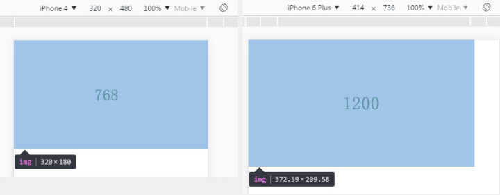 iphone4(320)下,图像宽度和我们设置的 100vw 一致,而浏览器选择的是 768 图像没有选择 360 图,因为 iphone4 的 dpr 是 2,浏览器智能地选择了合适的 768。