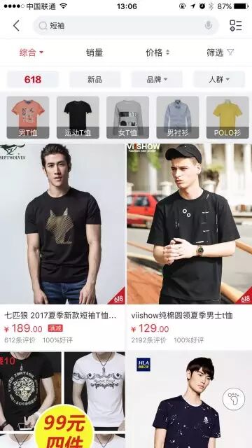• 在设计栅格视图时,要注意选择合适的卡片(图片)大小,大到足以让用户识别清楚,而小到在单位面积内呈现更多的产品。