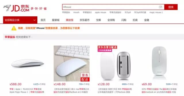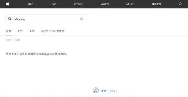 我以为苹果鼠标叫「iMouse」,结果只有「找到 0 个结果」: