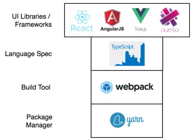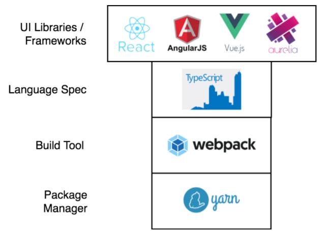 在上面的“视图”层之下有一个共同的节点,我们可以通过包含一些关键原则的工具来进行构建应用。在 Kenzan,我们认为这个技术栈给用户需求和开发者体验都提供了一个选择空间。这样的结果可以使任何团队、任何应用(大型应用或者小型应用)都受益匪浅。请牢记,这里介绍的工具是用于特定类型的项目开发的(前端 UI 应用程序),并不是一个可以应用到所有应用的一刀切方案。权衡能力、判断力和团队需求应该是决策的重要因素。