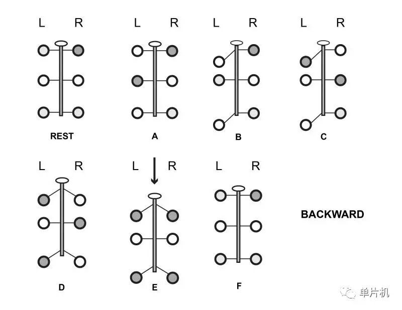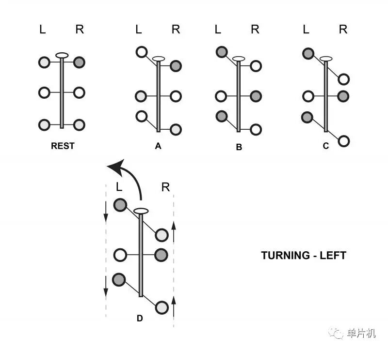 以下是运动的图表(腿上的灰色意味着机器人的重量在该腿上)。